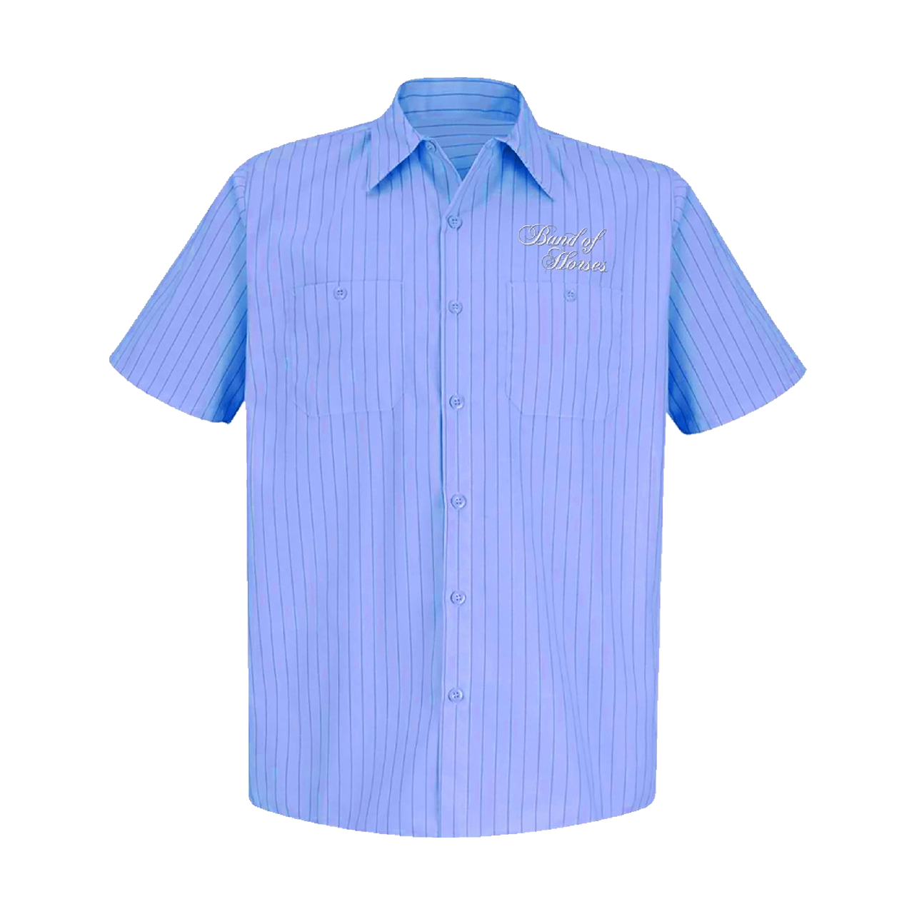 Creighton in the band wears a shirt like this pretty much every day. Get your own Band of Horses work shirt embroidered in white thread. Perfect for a night out or getting your hands dirty. It is a cotton/poly blend and fits oh so nice!