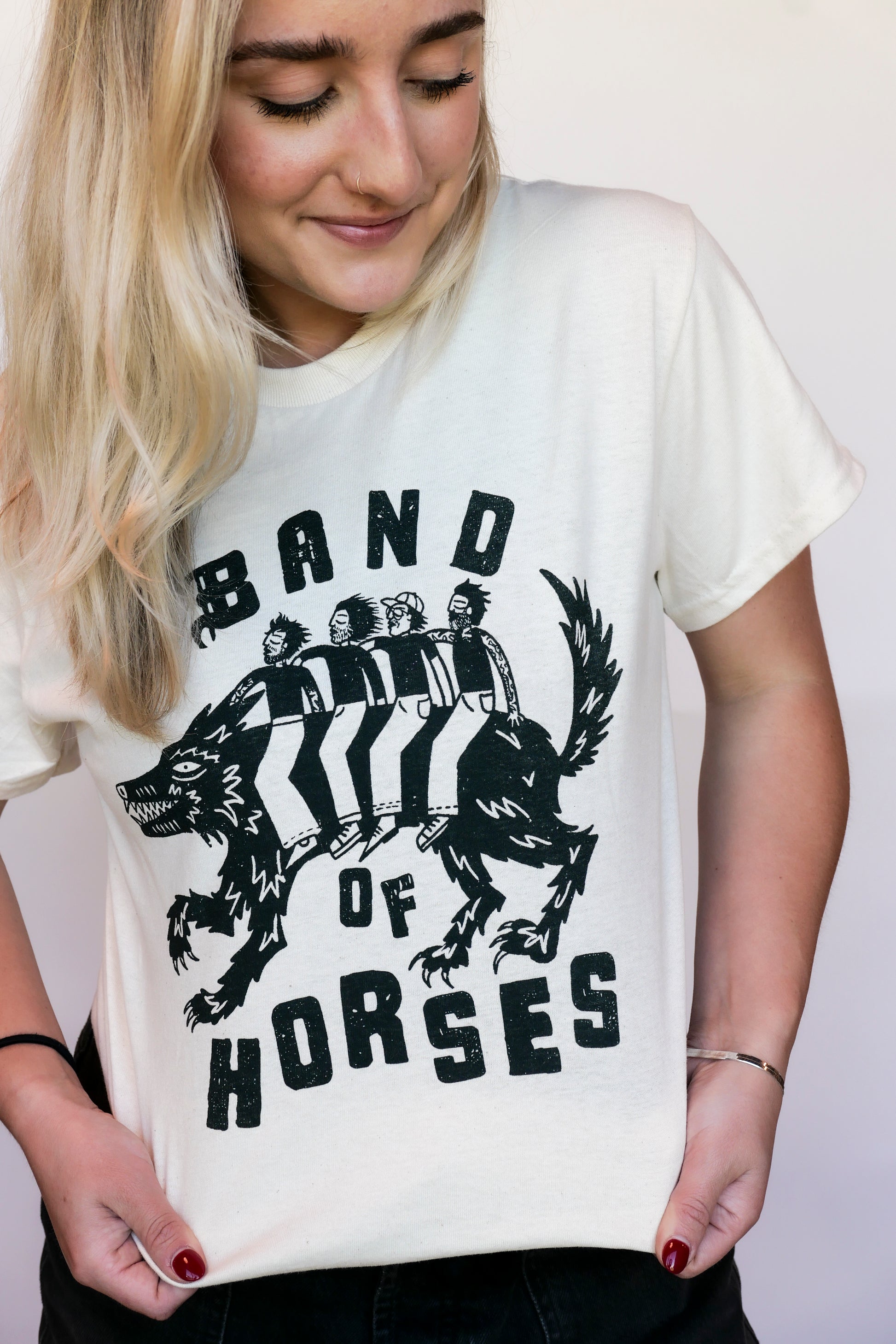 Born under a crooked moon and raised on dive bar jukeboxes, the Wolf Tee howls with the spirit of the strange and the free. Featuring a skeletal beast stitched together by rhythm and grit — and a full band riding shotgun — this one’s not for the faint of heart.